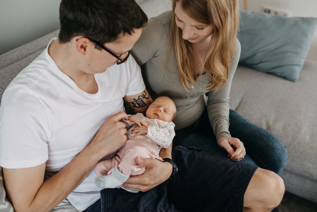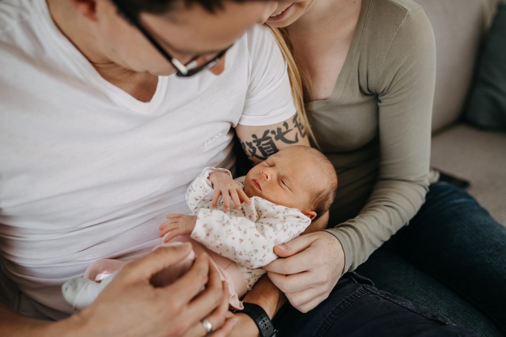Im Sommer durfte ich Carolin und Marcel wieder sehen. Nach einem Verlobungsshooting, der Hochzeit und einem Babybauch-Shooting habe ich dann auch die kleine Lina kennen gelernt. Als ich bei den dreien ankam, war die kleine Lina tief und fest am Schlafen. Wir hatten also die besten Voraussetzungen, um ganz entspannt in unser Shooting zu starten.