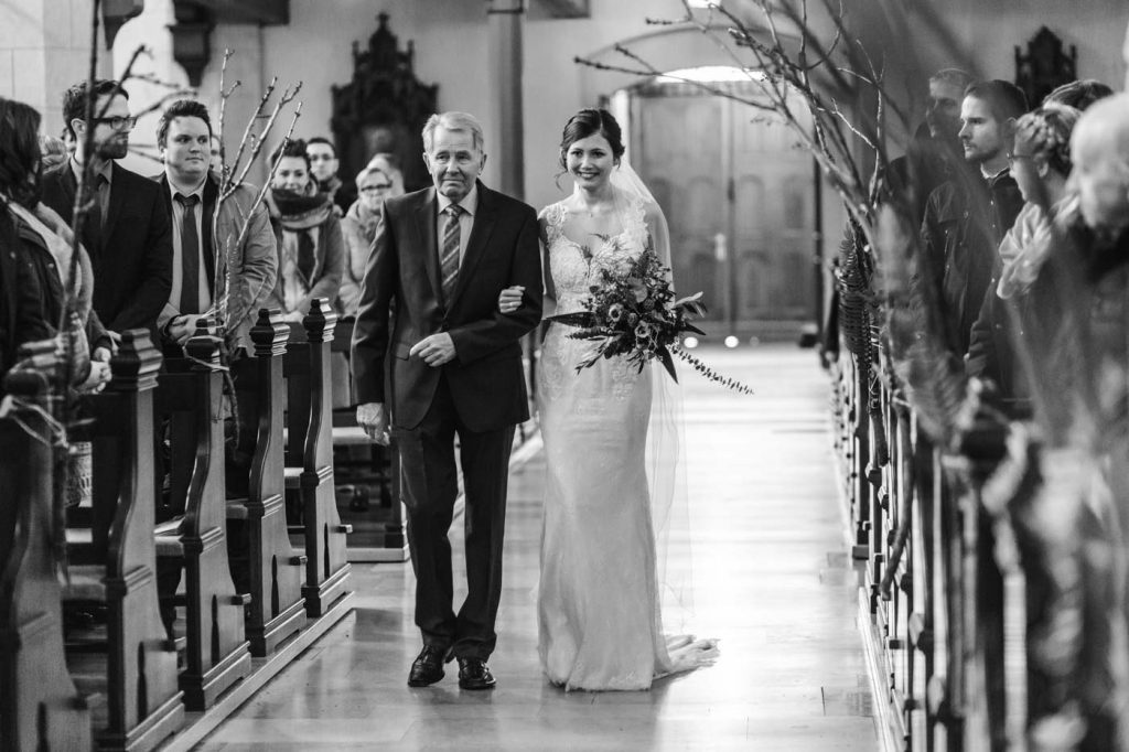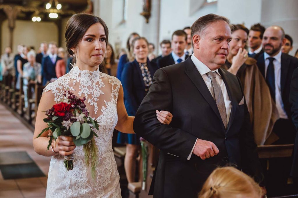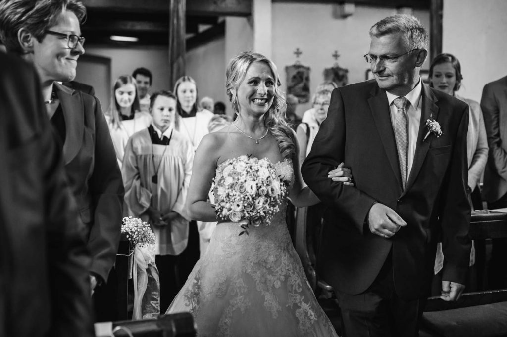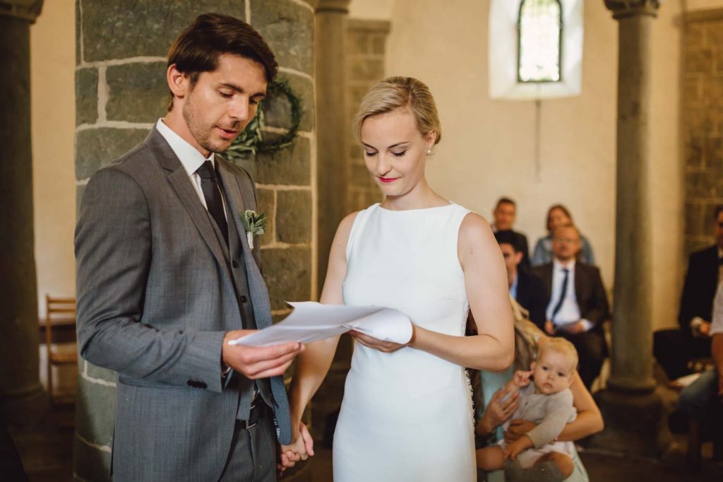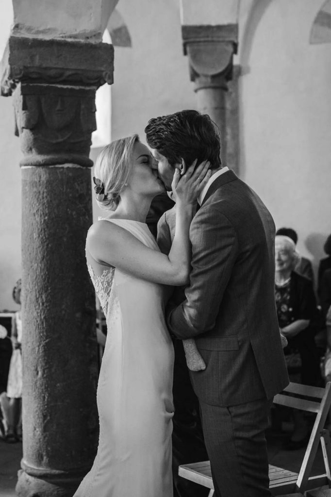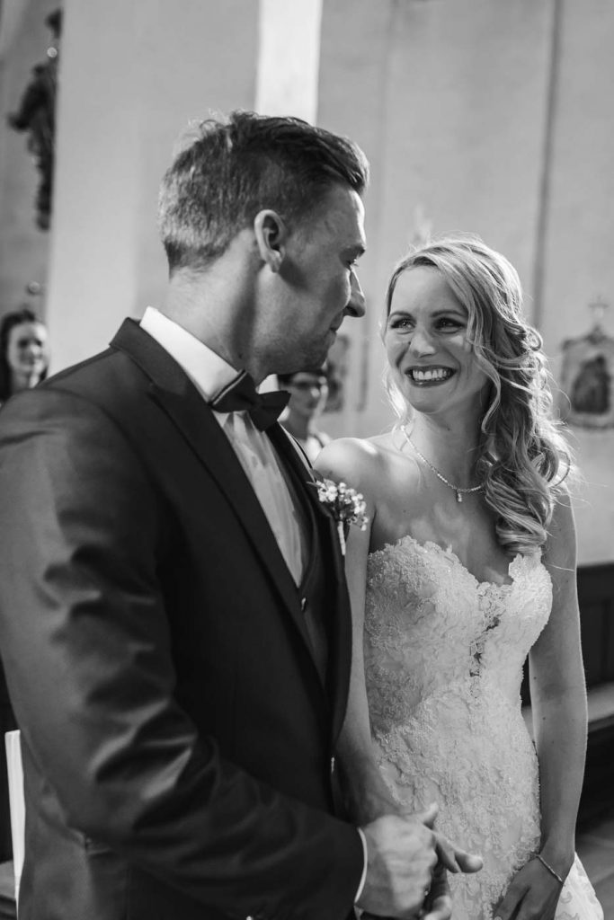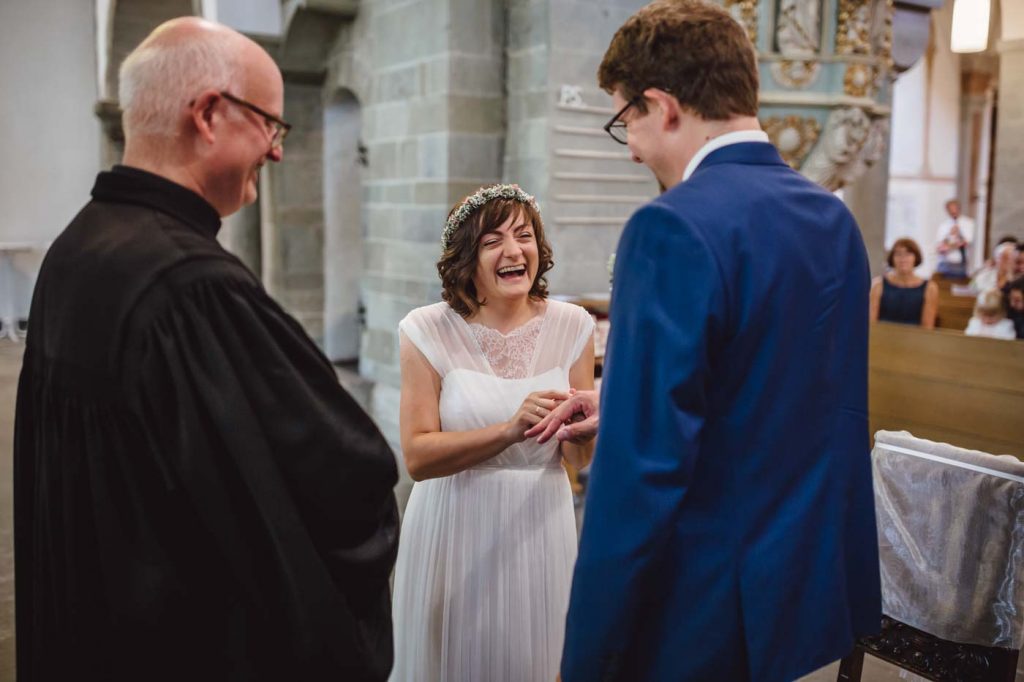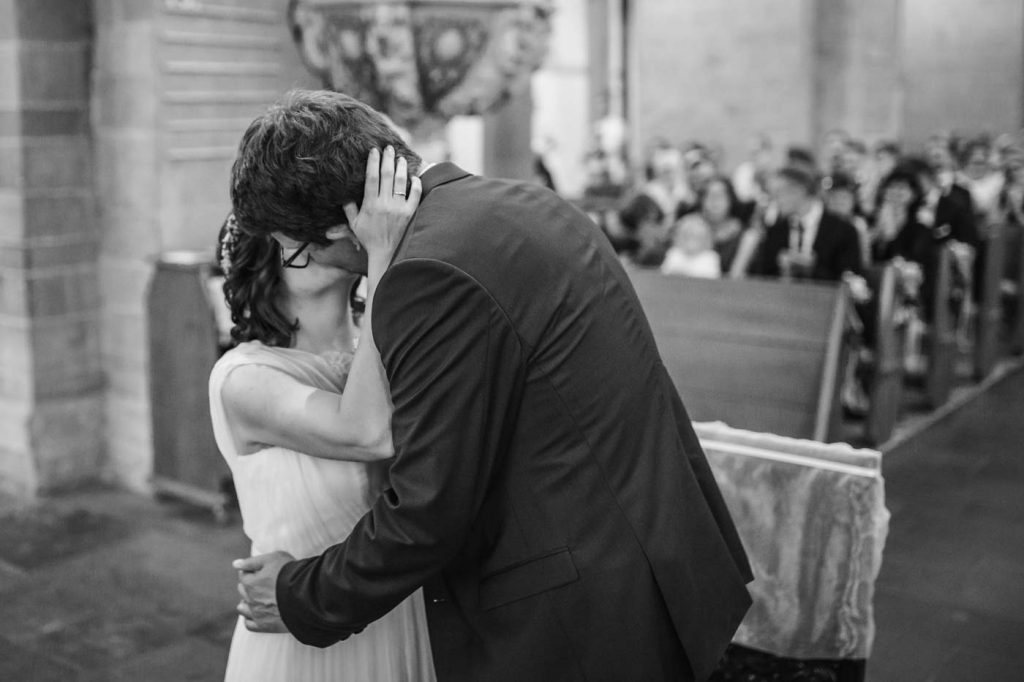 Beim wichtigsten Punkt der ganzen Hochzeit kommt es darauf an, immer vorbereitet zu sein und die Abläufe zu kennen, um nichts zu verpassen. Deshalb arbeite ich möglichst vorausschauend. Ich verhalte mich während der offiziellen Zeremonie unauffällig. Dabei fotografiere ich mit lichtstarken Objektiven, nur mit vorhandenem Licht um die Trauung nicht zu stören.