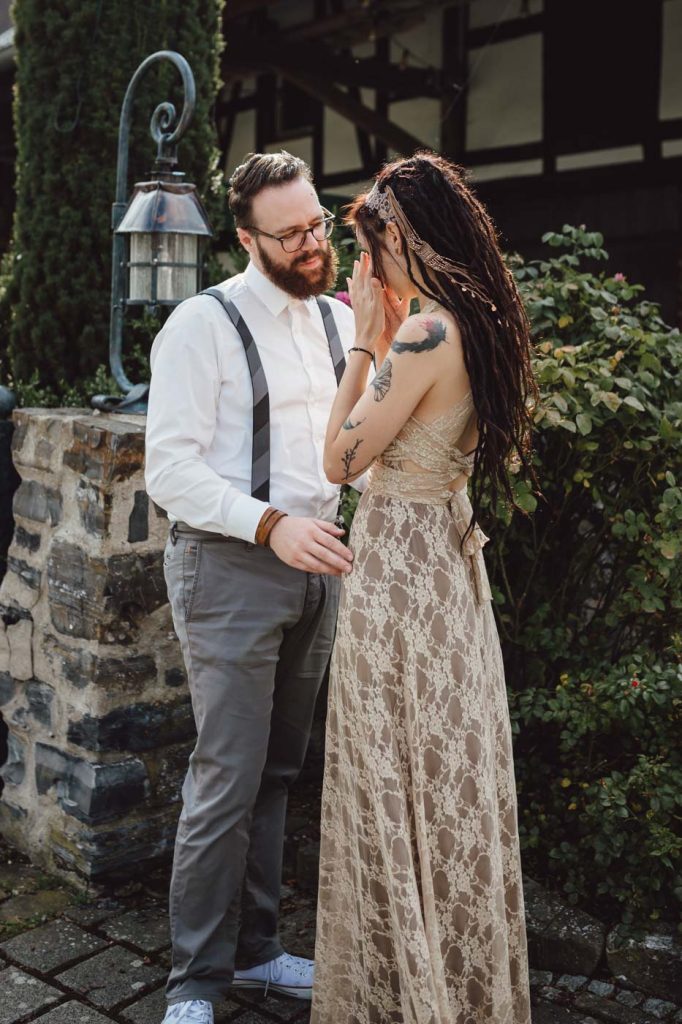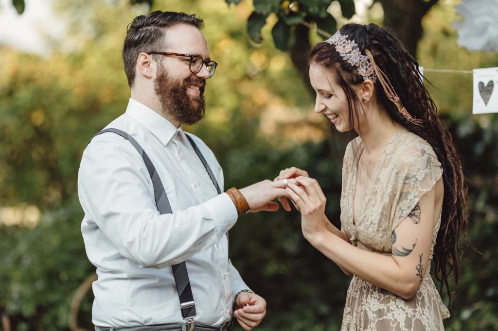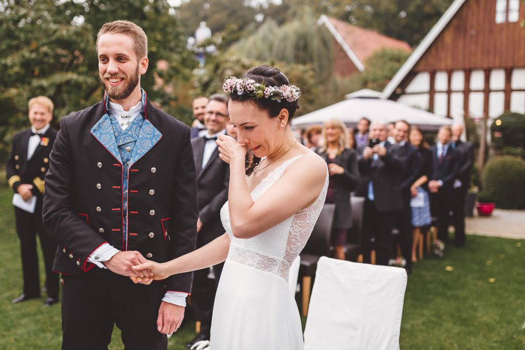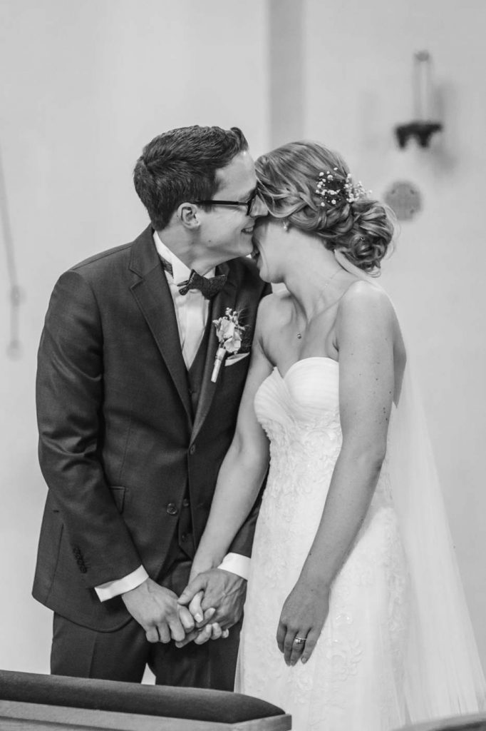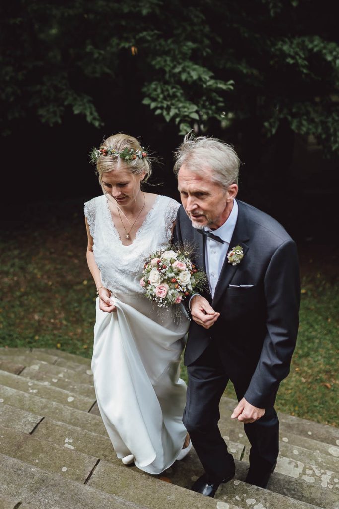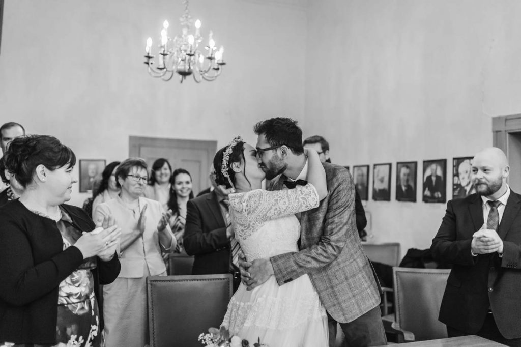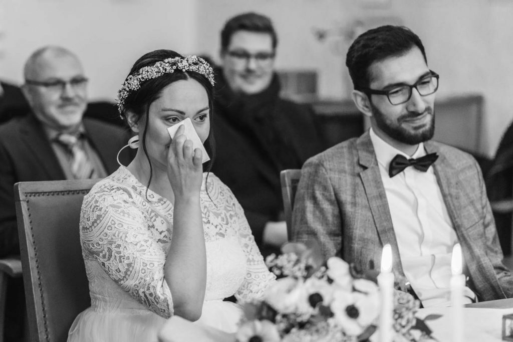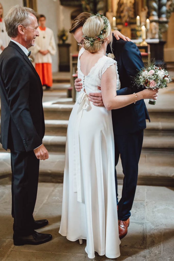 Beim wichtigsten Punkt der ganzen Hochzeit kommt es darauf an, immer vorbereitet zu sein und die Abläufe zu kennen, um nichts zu verpassen. Deshalb arbeite ich möglichst vorausschauend. Ich verhalte mich während der offiziellen Zeremonie unauffällig. Dabei fotografiere ich mit lichtstarken Objektiven, nur mit vorhandenem Licht um die Trauung nicht zu stören.