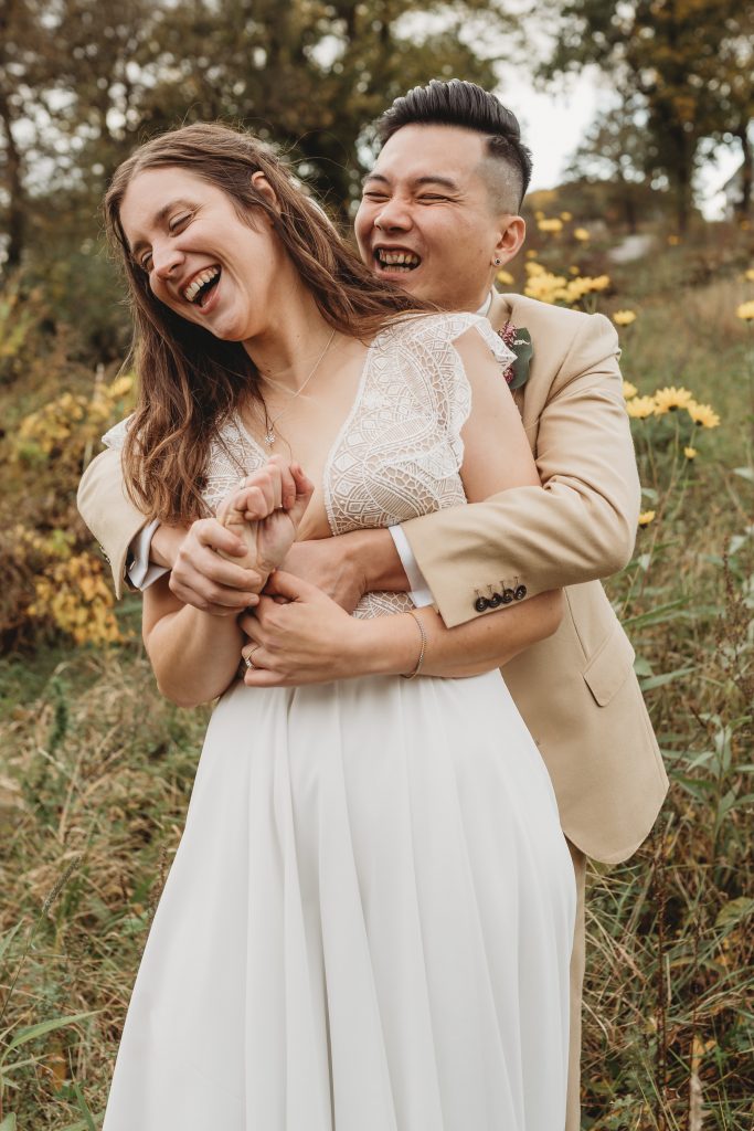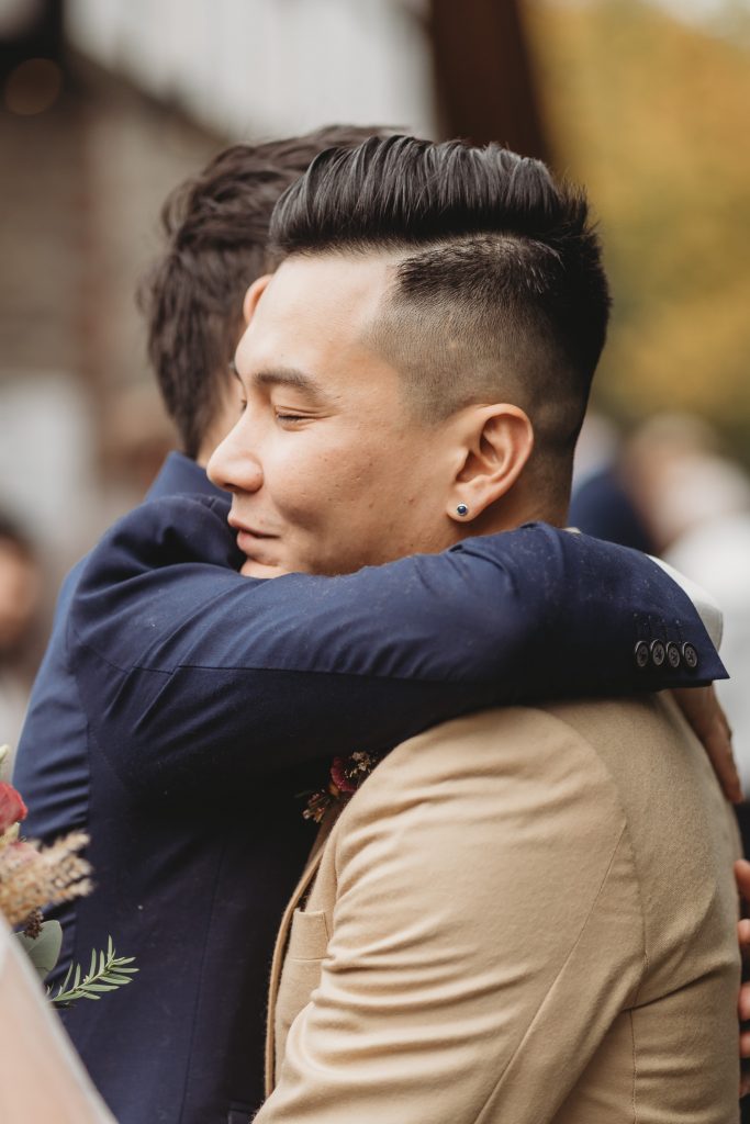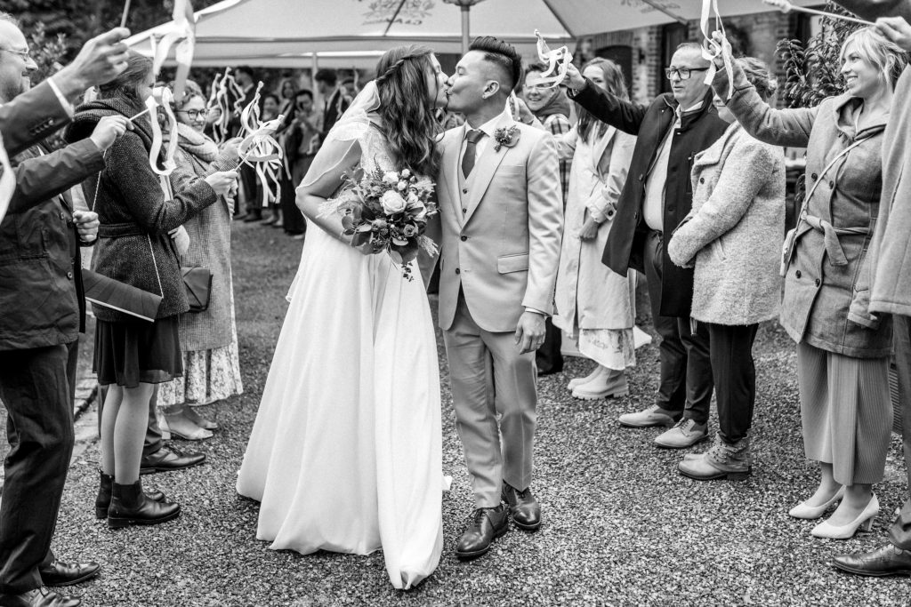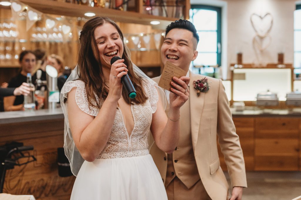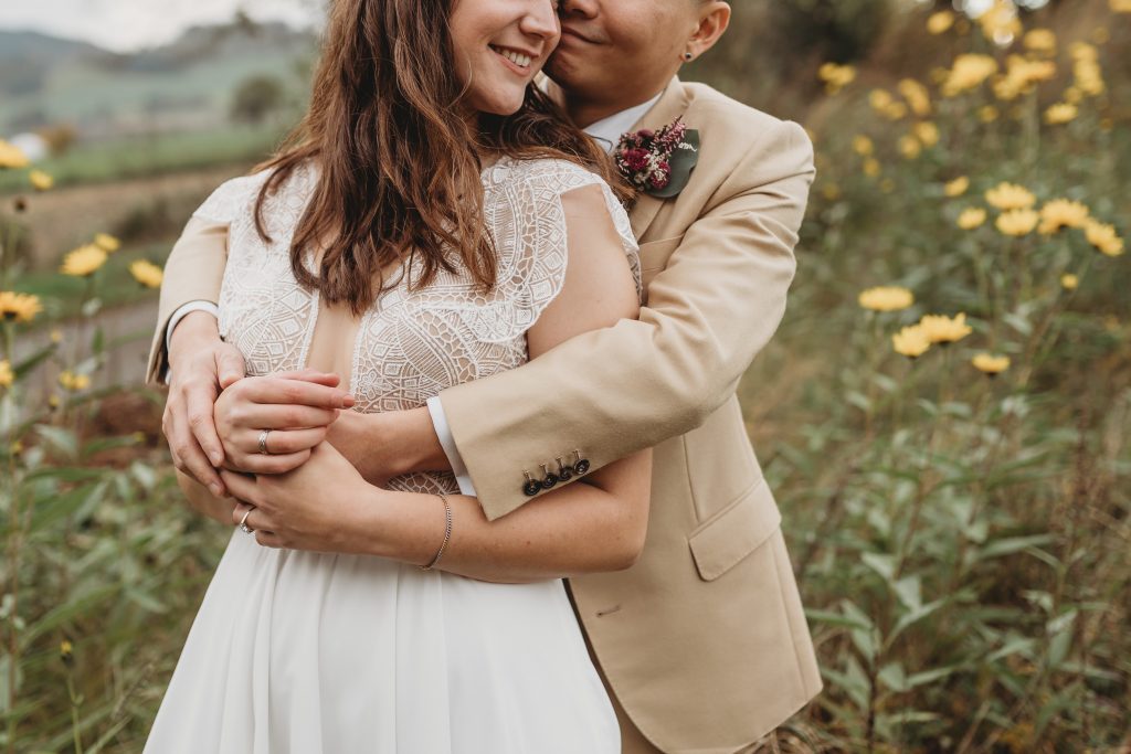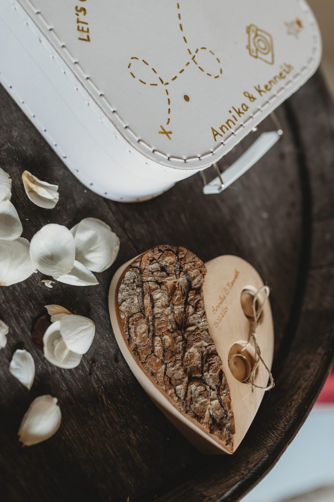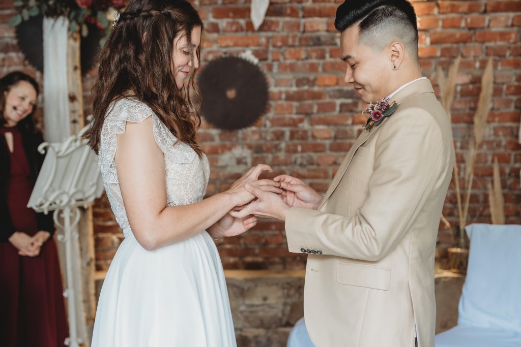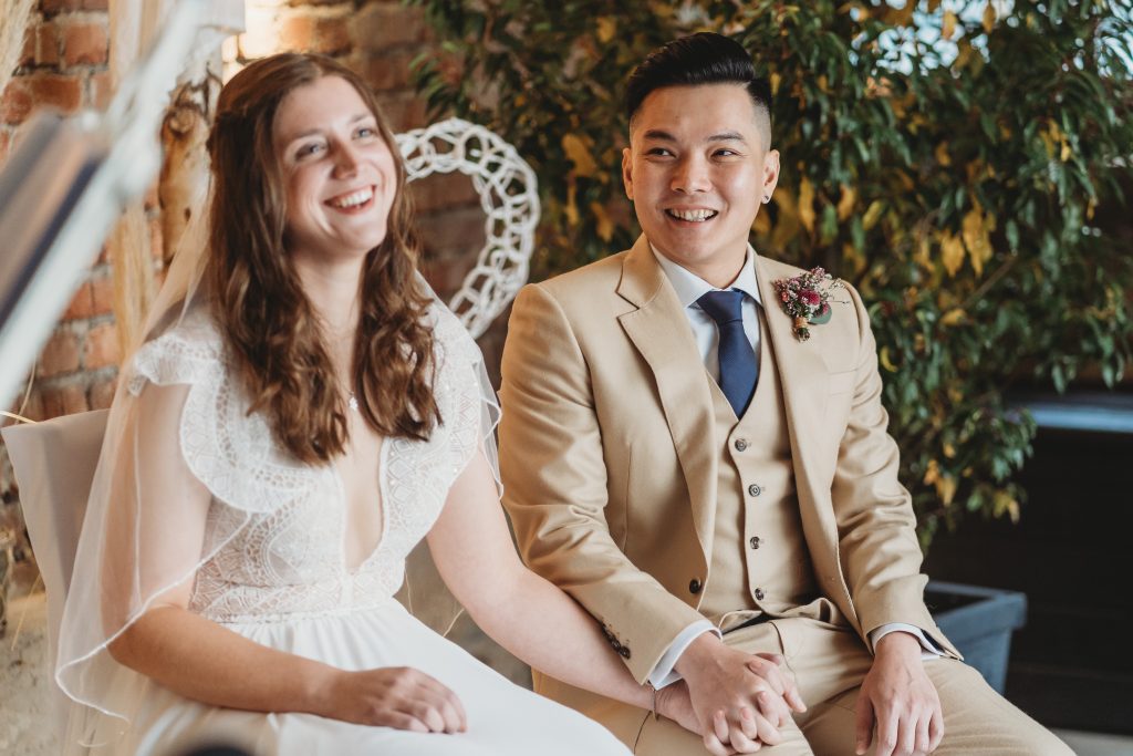 Annika and Kenneth celebrated a stunning, multicultural wedding at the Grewen Mühle. The wonderful day began with a first look of the couple in the venue’s garden and continued with a formal ceremony on-site with Katrin from “Pretty Words.” The couple’s family and friends traveled from all over the world to celebrate their love, which began with a long-distance relationship between Singapore and Germany. Afterwards, the guests celebrated with a champagne reception and a wedding cake from Konditorei Krengel, and we were able to sneak away for a beautiful, autumnal couple’s photoshoot. Afterwards, the guests from all over the world celebrated at the Grewen Mühle.